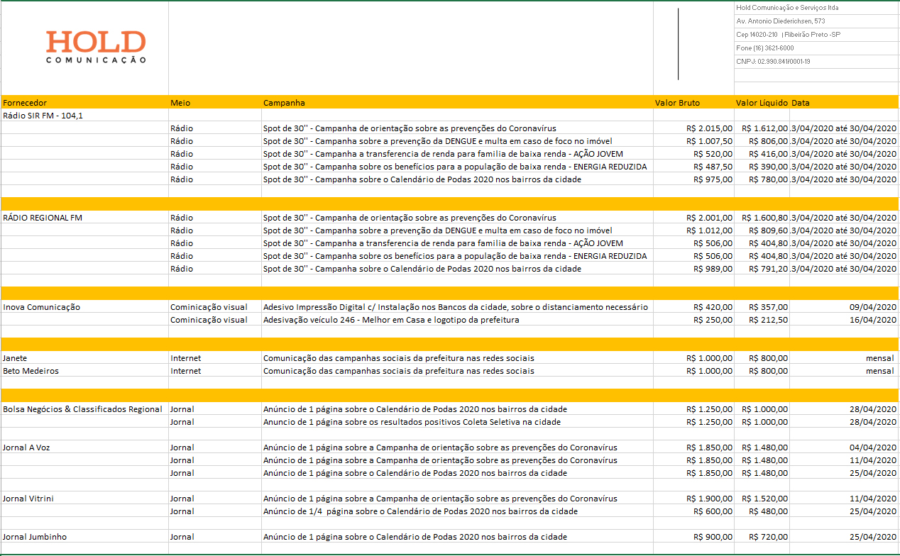 Gastos com fornecedores terceirizados abaixo: >>