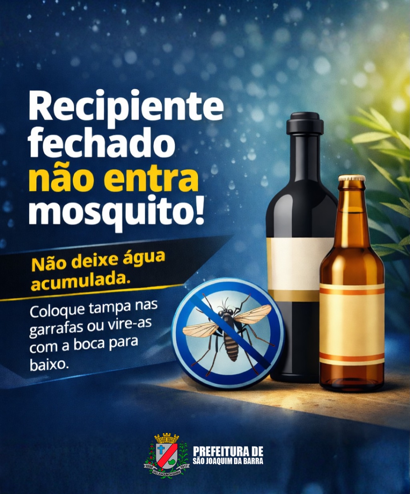 ✅ Garrafas, potes e recipientes devem estar sempre tampados.